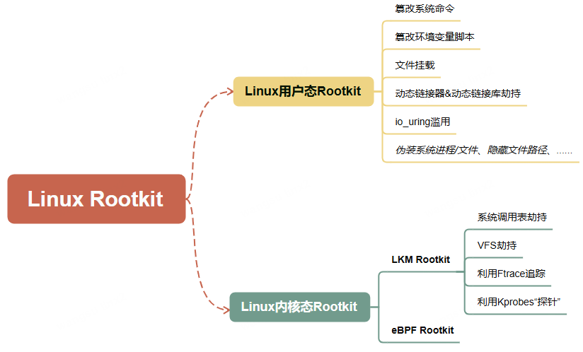 Linux Rootkit是一类针对Linux操作系统设计的恶意工具集,它通过多种方式隐藏自身和攻击活动,使得攻击者能够绕过安全防御机制,在受害主机上非法维持控制权限,因此常被喻为黑客的"隐身斗篷"。