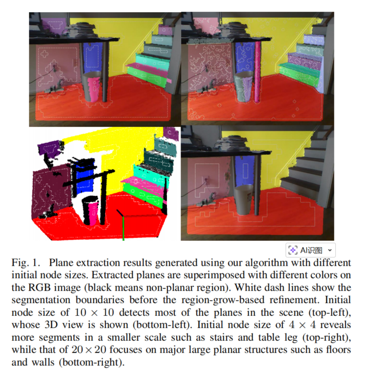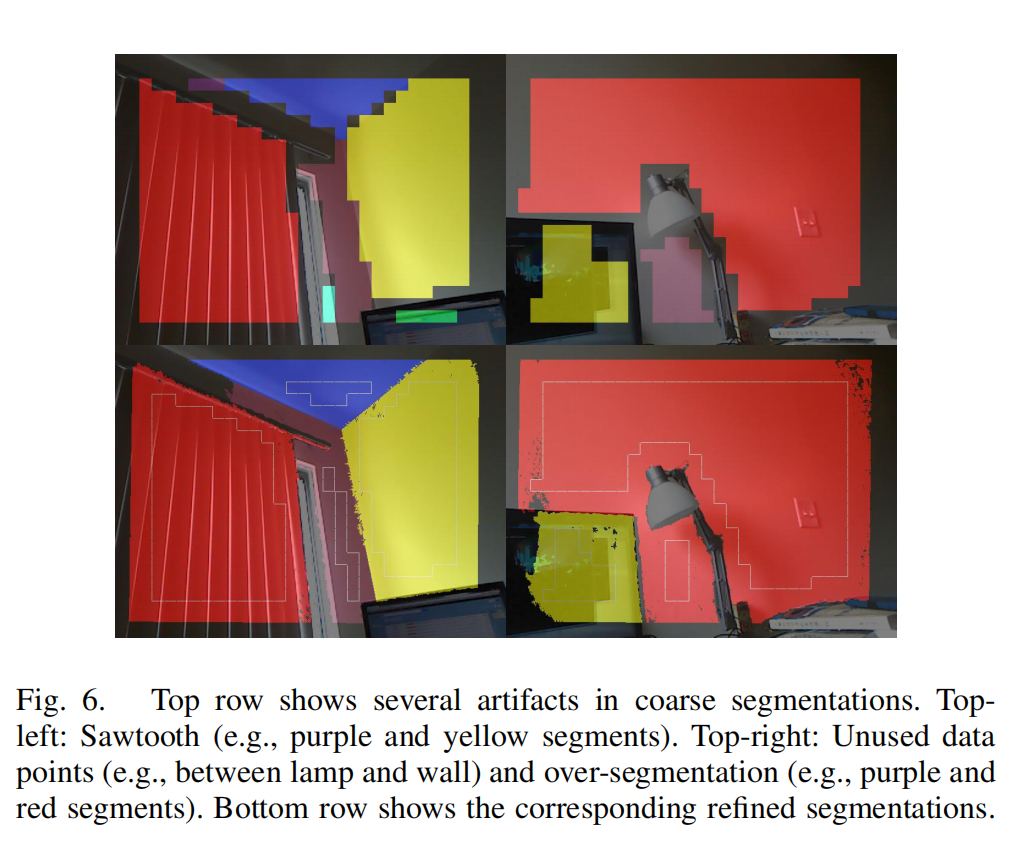 对于许多应用场景,上一节得到的 粗平面分割 可能不够精确,尤其是当应用需要 平面边界信息 或对 平面方程精度 有较高要求时。因此,我们对粗分割 BBB 进行 精细化处理。