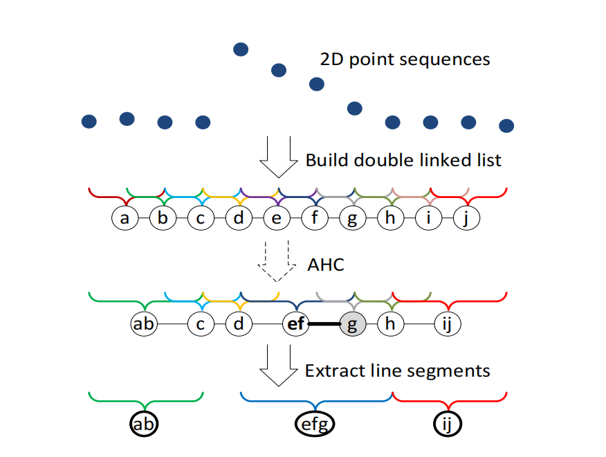 如 算法 3 所示,我们的 AHC 与线回归几乎相同,但操作对象是 图而非双向链表。
