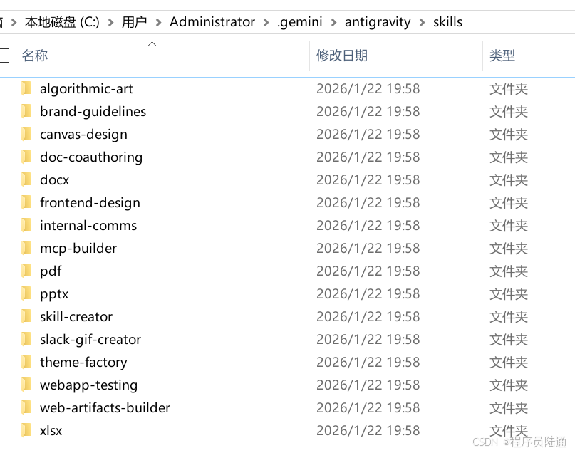 我使用的Windows系统,存放目录是 C:\Users\Administrator.gemini\antigravity\skills