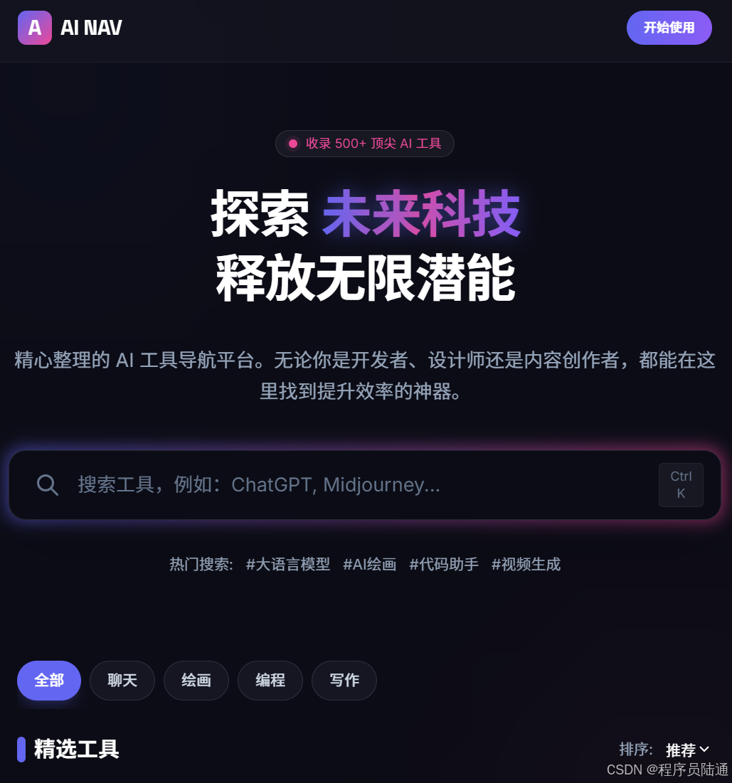 创建一个导航站的落地页HTML,使用 frontend-design skill