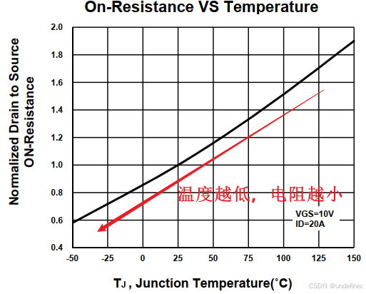 **第三个是导通电阻 Rds(on)。**这是MOS管作为开关时最重要的参数之一。它直接决定了导通损耗,并且具有很强的正温度系数,即温度越高,电阻越大,损耗也越大,形成恶性循环。