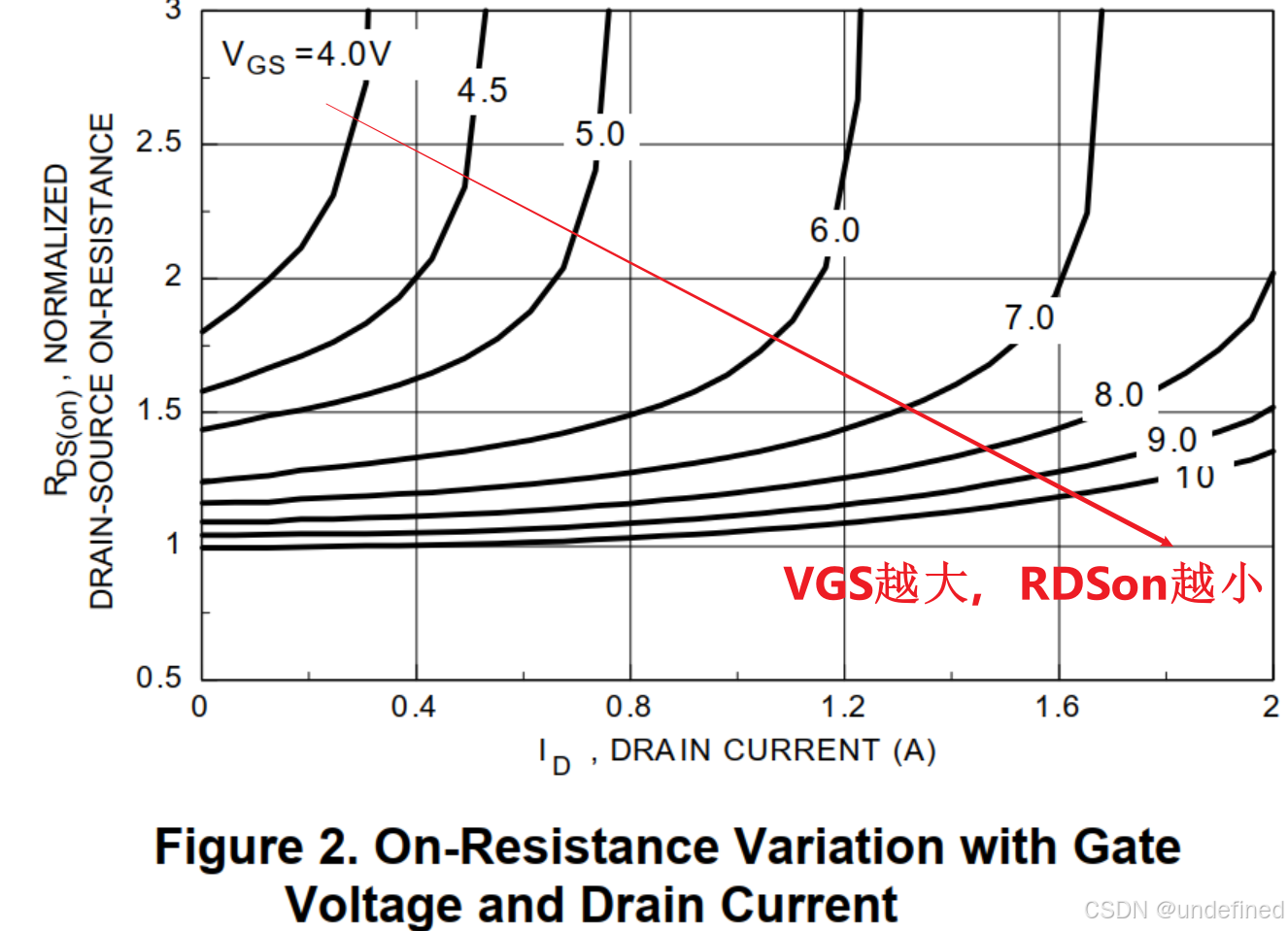 也可以由这个图来理解,会更深入:VGS越大,Rdson越小。大家记住这个规律,实际非常有用。