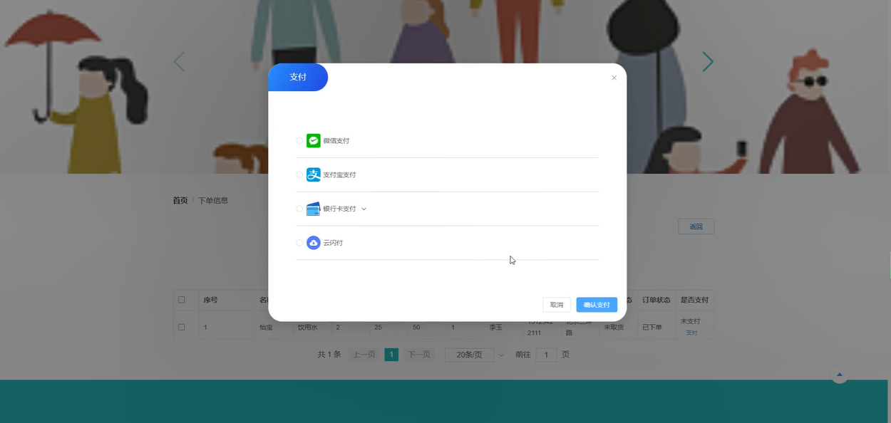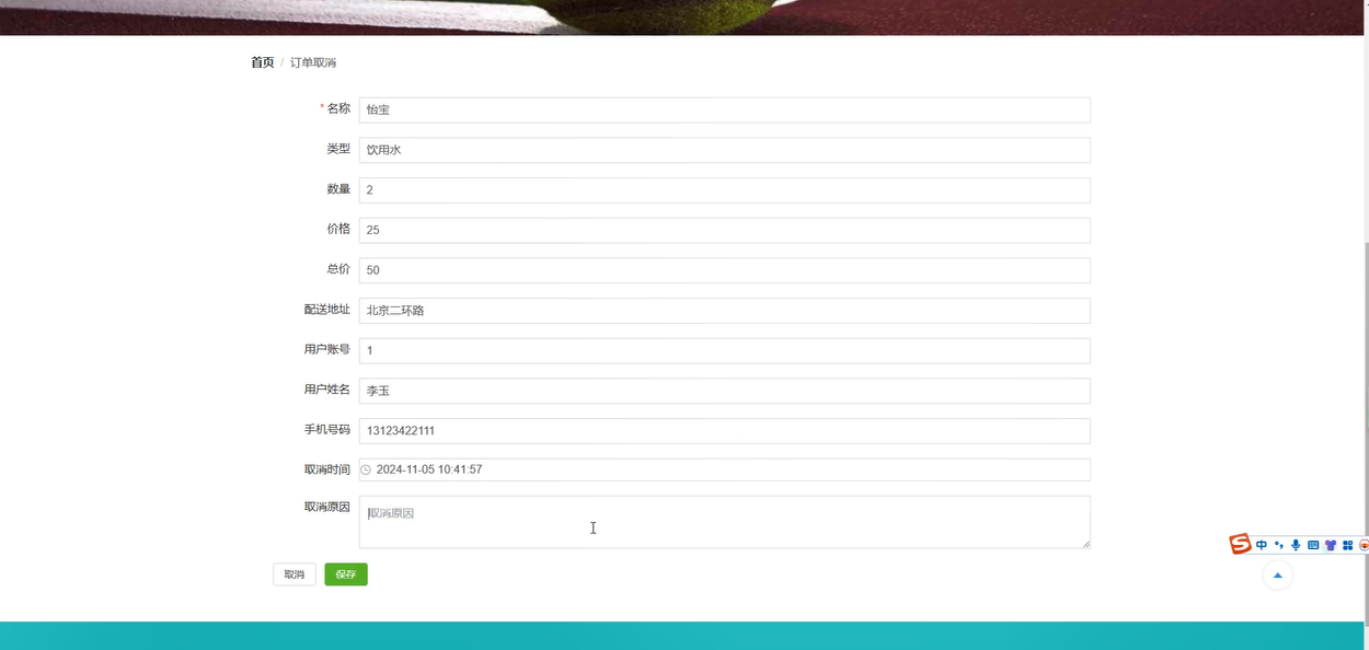 订单管理:查看用户下单信息,执行取货操作(填写取货信息)、配送操作(填写配送信息),确认订单完成(填写完成信息),实现订单全流程跟踪处理。