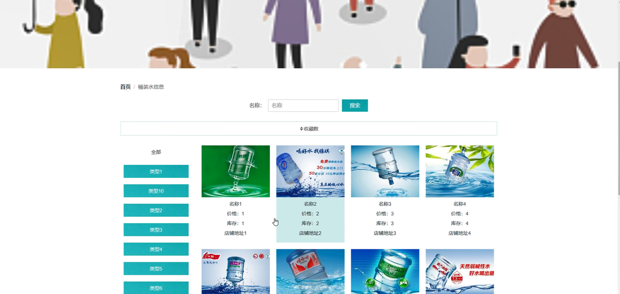 信息浏览:查看系统首页公告信息、桶装水信息(支持按名称、类型、收藏数筛选查询),查看桶装水详情及评论;