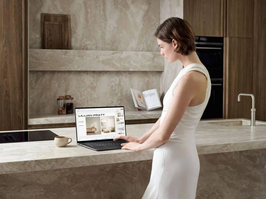 这种从容优雅的气质,与华硕灵耀 16 Air 的设计灵魂不谋而合。机身采用高科技陶瓷铝材质,经 CNC 一体成型工艺打磨,轻约 1.49kg,薄至 1.1cm,拿在手里轻盈得像一片飘落的羽毛,却又透着不输分毫的质感。无论是通勤时塞进背包,还是在咖啡馆、图书馆随手摊开,它都能像一只优雅的猫,安静融入任何场景,不张扬,却自带气场。