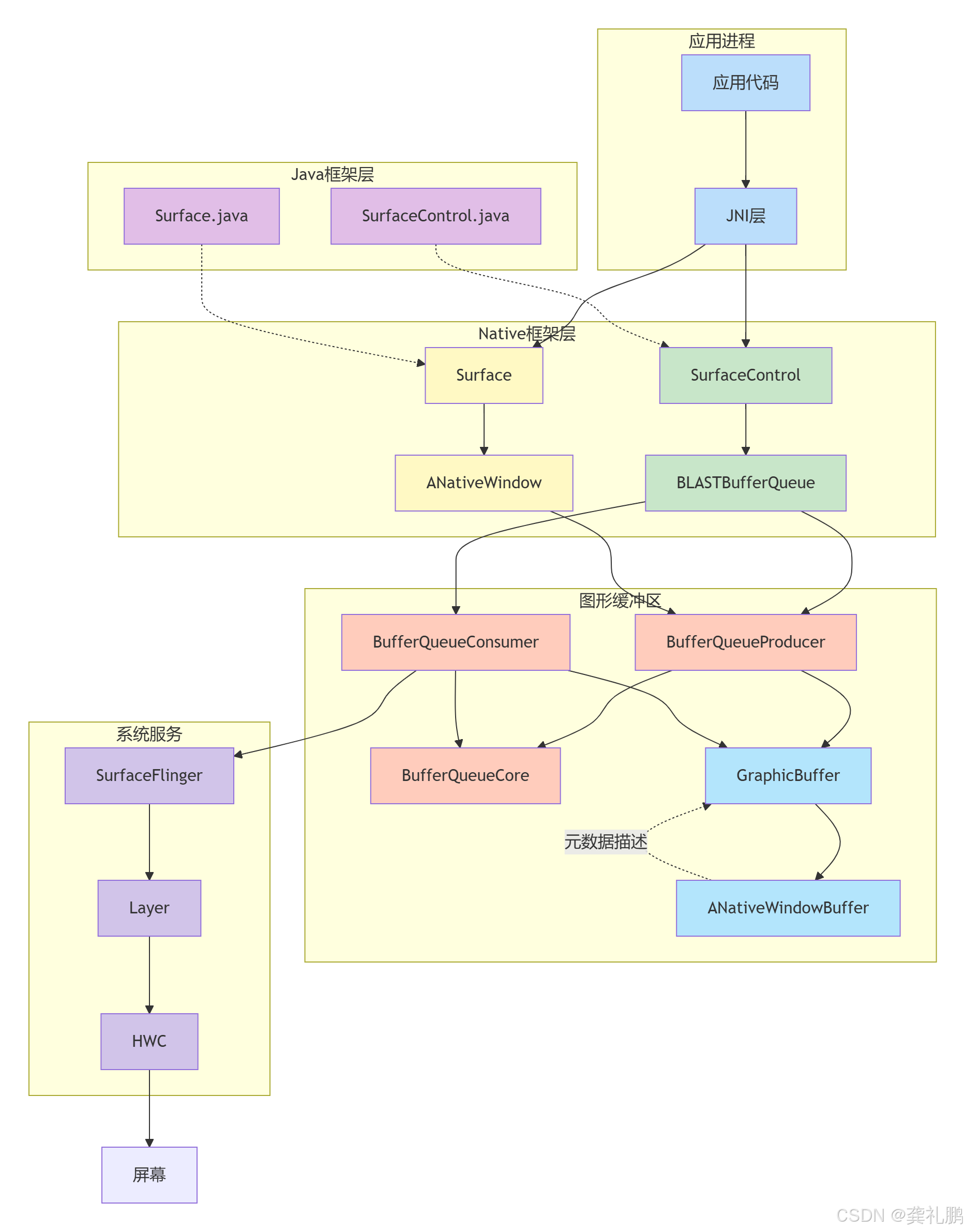 在上一篇中提到了许多陌生的类,比如Surface/SurfaceControl/ANativeWindow/ANativeWindowBuffer,这些类有什么作用,以及有什么关系,以及他们和BufferQueue之间是什么关系?我们带着这些疑问来开始讲解这篇内容