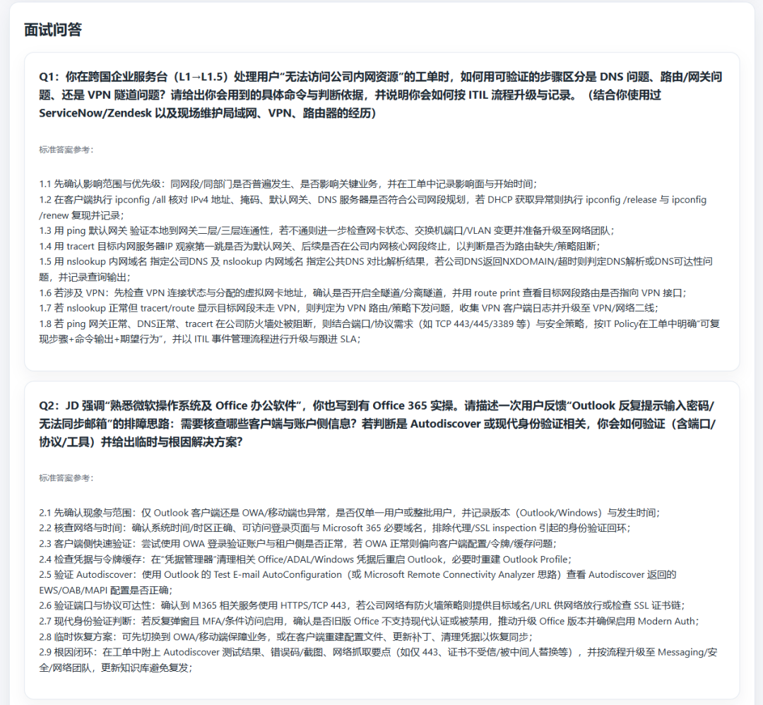 结合 JD 要求和候选人的具体经历生成结构化面试问题(按岗位能力模型拆分)