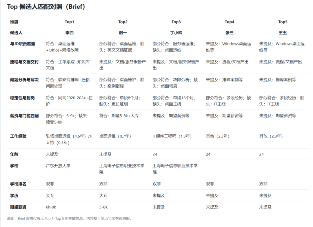 结果不是"黑箱结论",而是可追溯的理由,方便HR和用人经理快速对齐。
