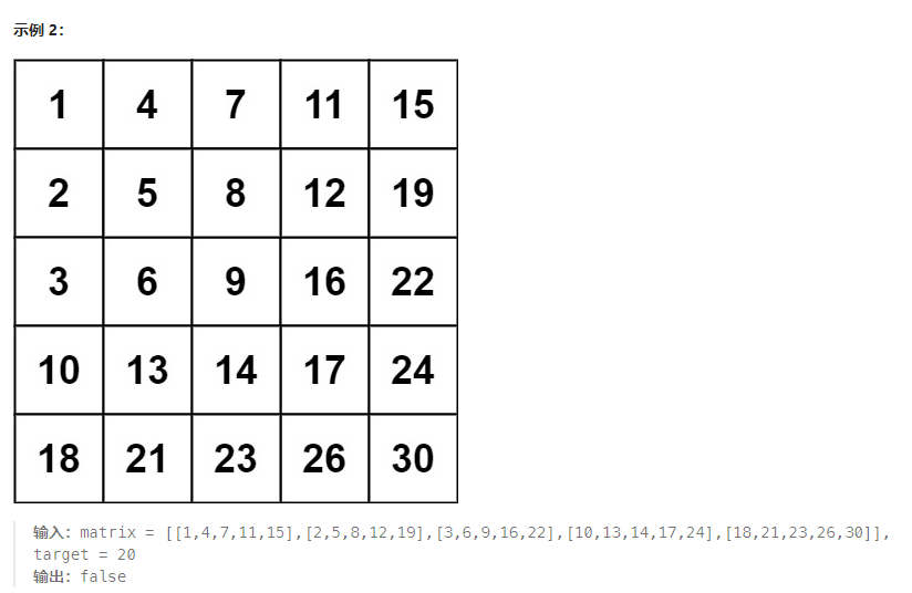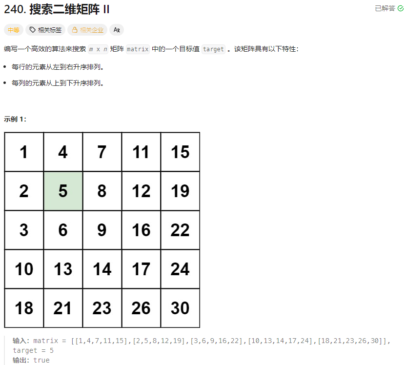 时间复杂度:O(m + n) :行最多走 m 次,列最多走 n 次。远不会访问同一个单元两次
