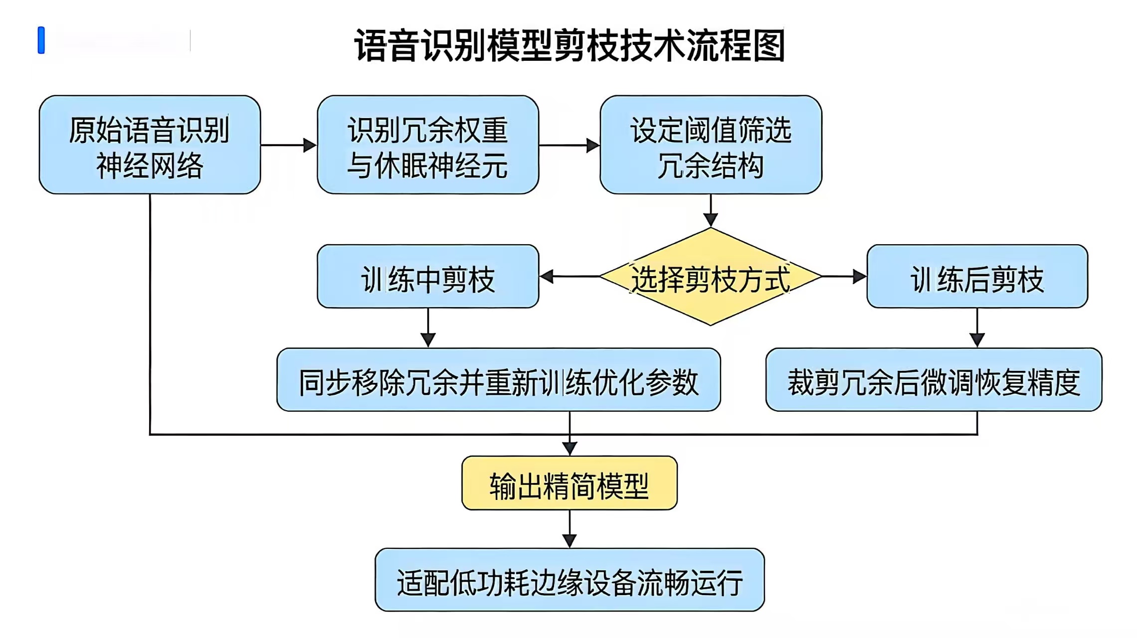 模型压缩技术其核心目标是在尽可能保留模型原有识别精度的前提下,通过精简模型参数、优化模型结构,降低模型的存储需求与运算复杂度,使其适配资源受限设备。目前,在语音识别模型压缩领域,量化与剪枝是应用最为广泛且效果显著的两种核心方法,二者协同配合可实现"精度损失可控、体积大幅缩减、效率显著提升"的优化目标。
