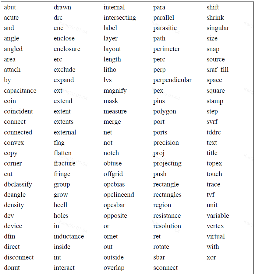 可对 SVRF 关键字集中的部分单词进行缩写 。当单词较长且使用繁琐,或预期使用频率较高时,缩写是合理的。缩写采用待缩写单词的前缀形式 ,且选择时需避免与常见层名冲突。关键字的缩写通常会在其首次出现 时展示,并通过关键字中大写显示的部分字母来标识。