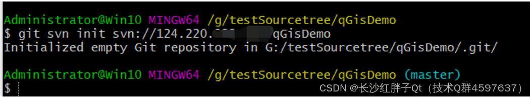 步骤三:先使用svn地址初始化git桥接的本地仓库