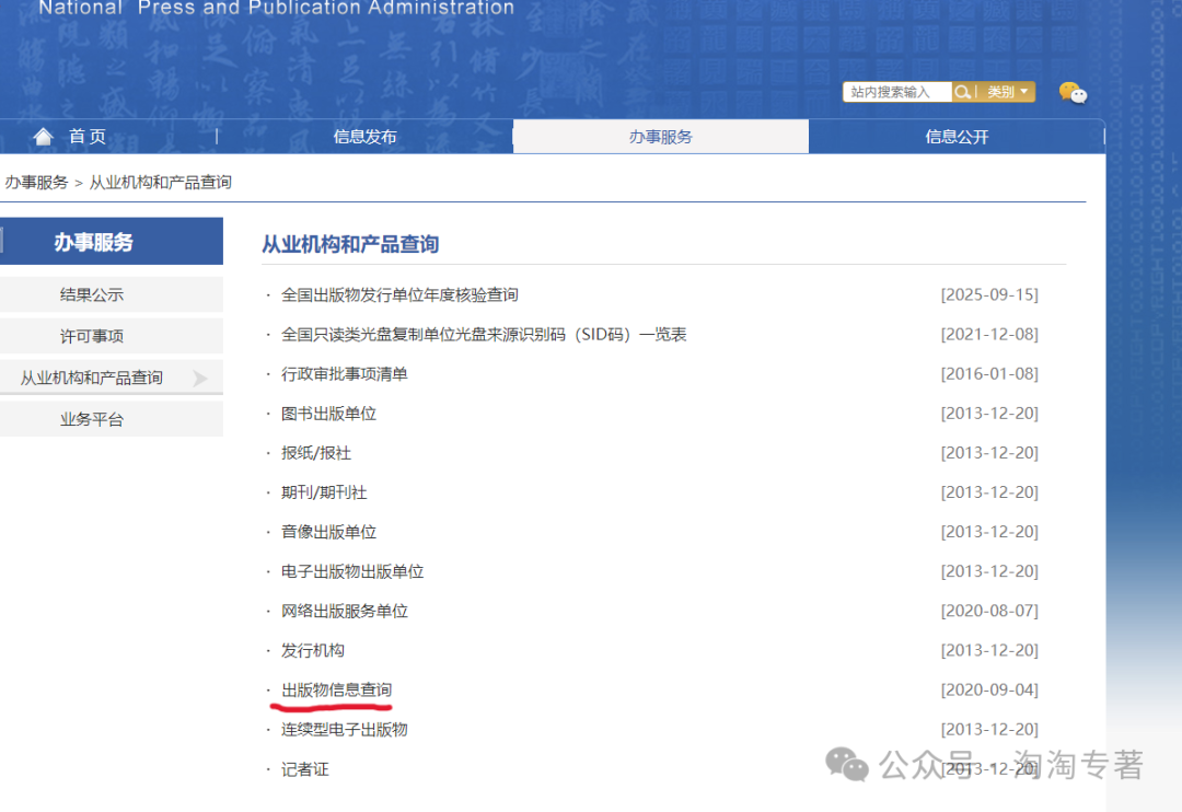 你登录新闻出版总署官网,找到"办事服务"→"从业机构和产品查询"→"出版物信息查询"
