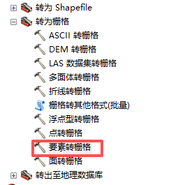 点击工具箱,选择"转换工具"--"转为栅格"--"要素转栅格"