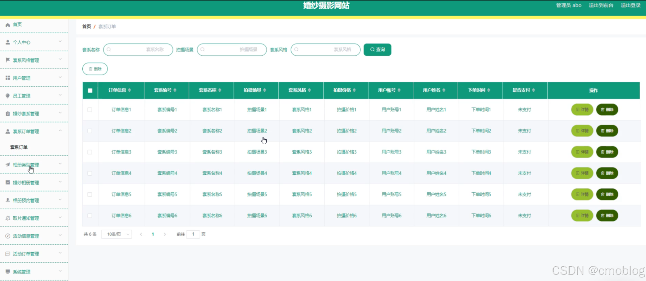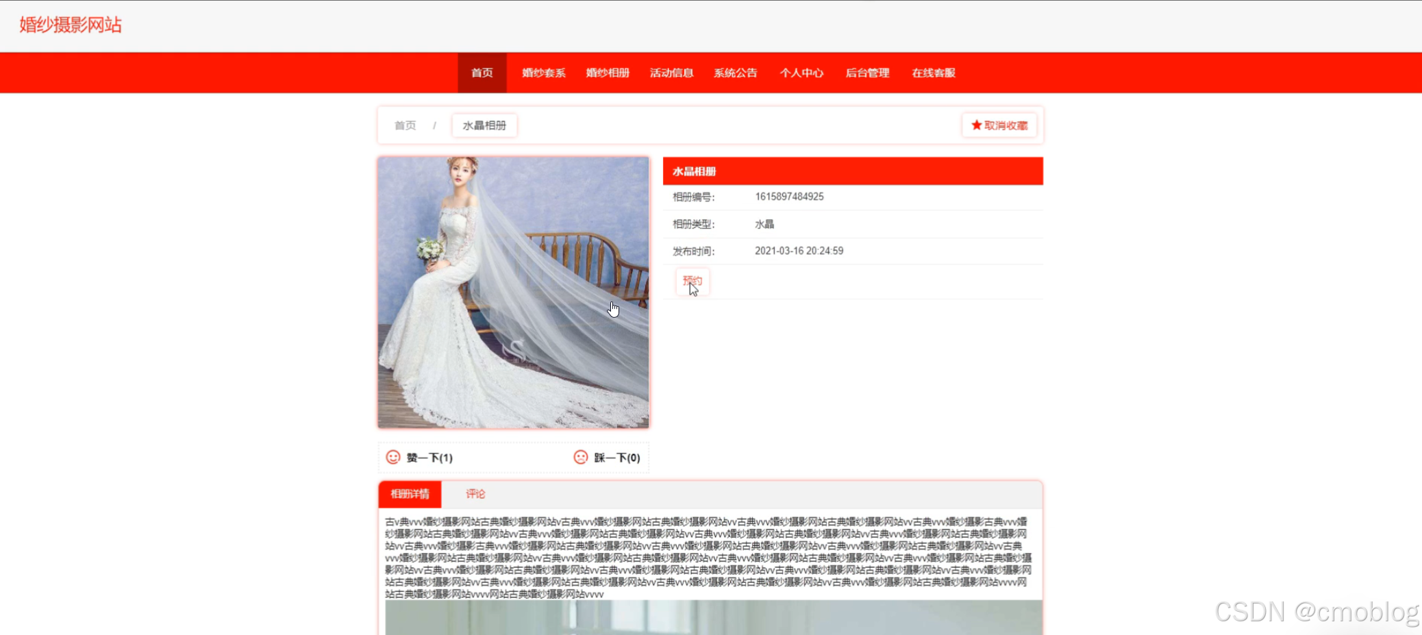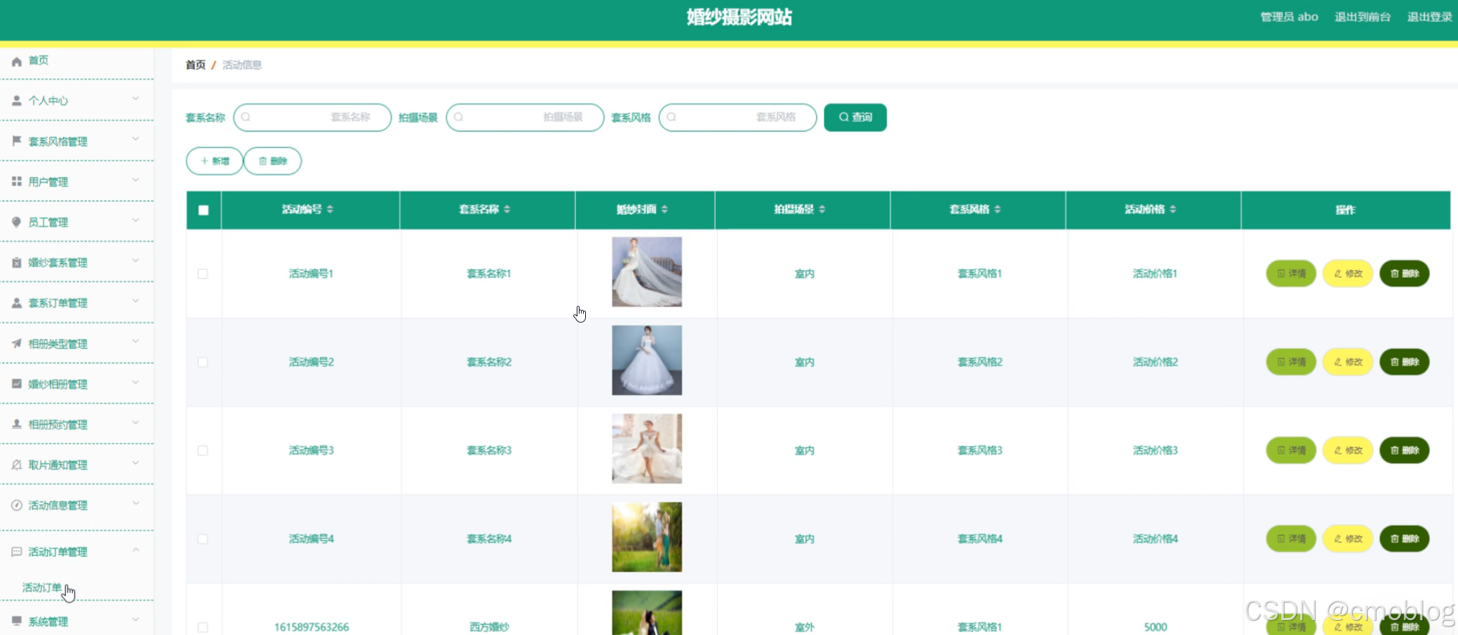 管理员登录 默认管理员账号为abo,密码abo。后台管理界面路径为/项目名称/admin,如http://localhost:8080/wedding/admin。