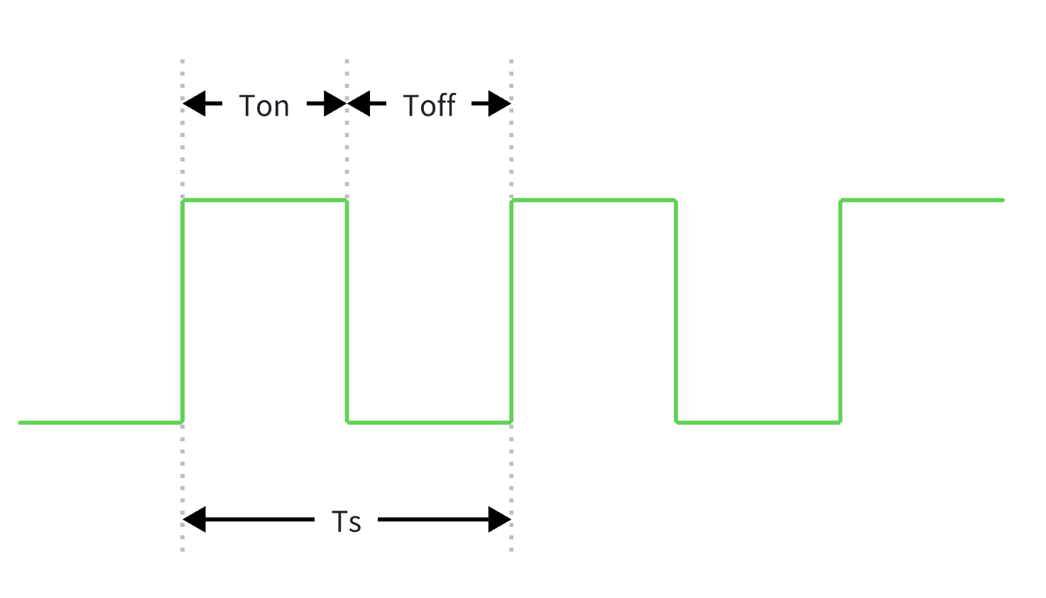 PWM 波形( Pulse Width Modulation ,脉冲宽度调制波形)是一种占空比可变的脉冲波形。这种调制方式通过改变脉冲的宽度来控制电路中的信号强度和频率。具体来说,PWM 波形中的高电平持续时间和低电平持续时间可以根据需要进行调整,从而实现对模拟信号电平的数字编码。