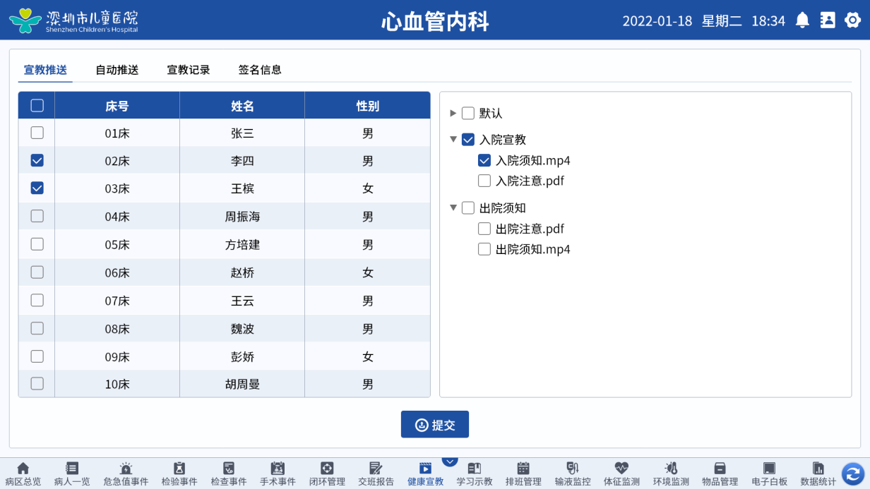 3、健康宣教数字化:支持图文、视频等多种形式的健康科普内容播放,既服务患者教育,也助力新护士培训;