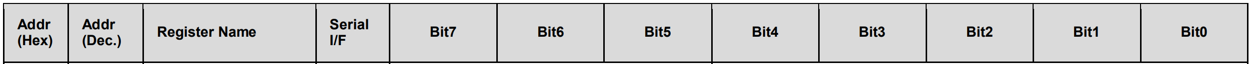 参考正点原子资料里面的《MPU-6000 and MPU-6050 Register Map and Descriptions.pdf》,第6页的Register Map可以找到所有的寄存器地址。我们需要加速度计和陀螺仪三个轴的寄存器(高低位共2*3*2=12个)、温度传感器的值(高低位共2个)、两个CONFIG。但是mpu6050似乎没有OFFSET和CALIBBIAS。