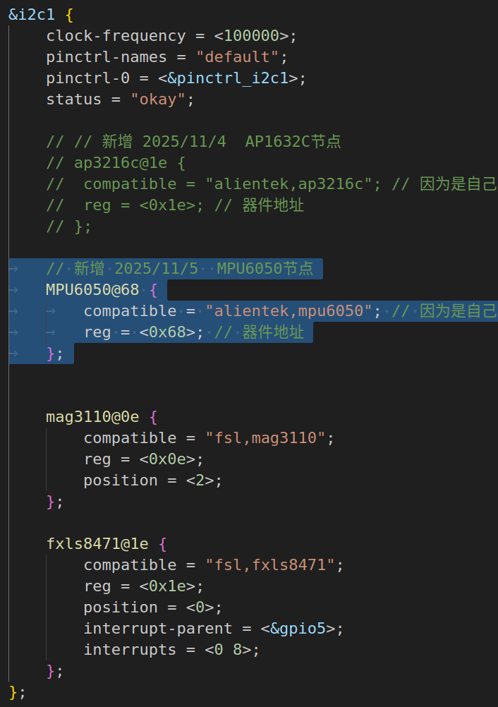 reg = <0x68>; // 器件地址
