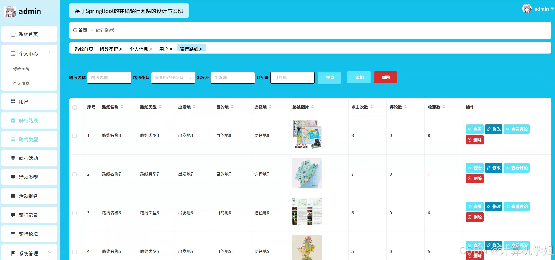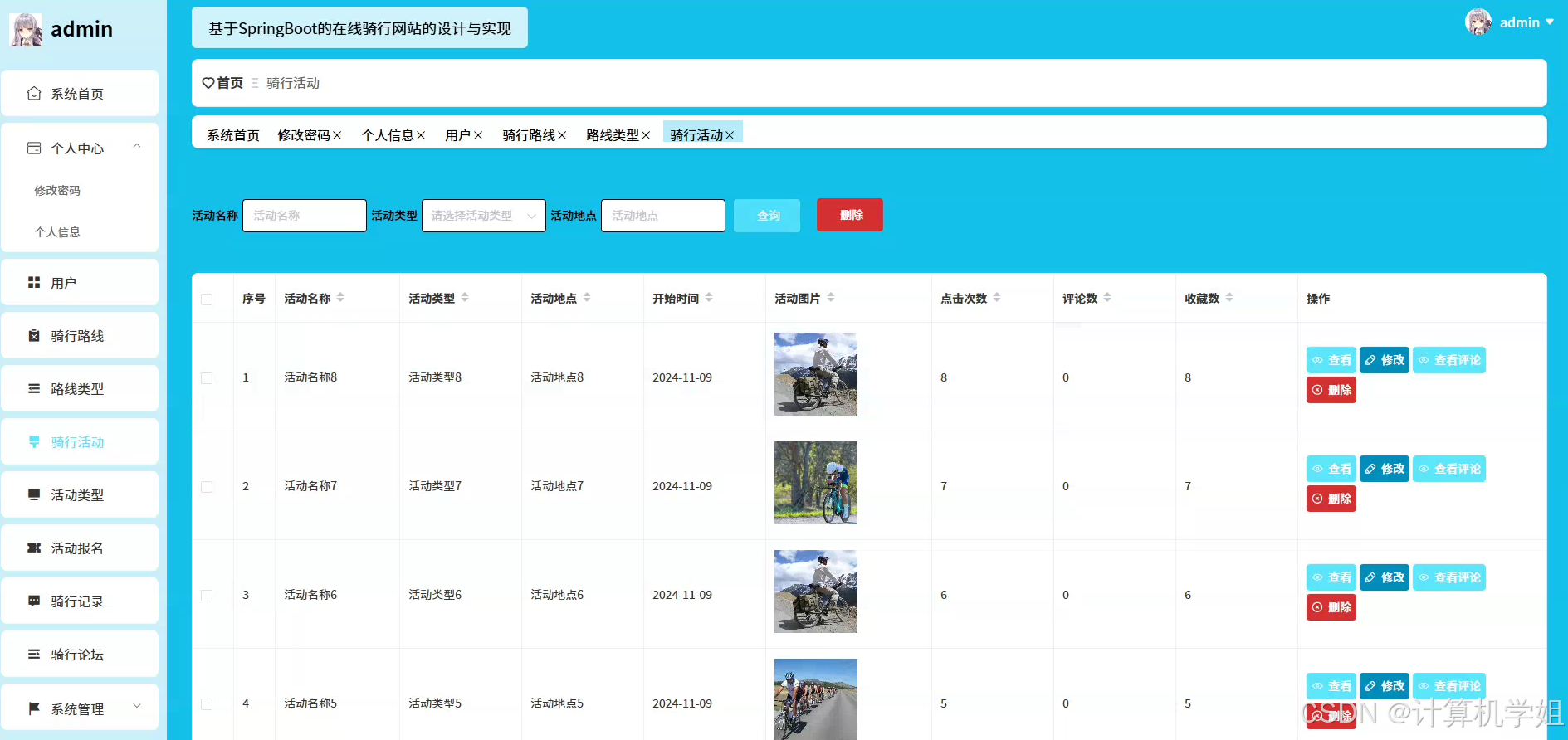 本研究旨在开发一个基于SpringBoot+VUE+MYSQL的在线骑行网站系统,以满足骑行爱好者日益增长的多样化需求,推动骑行文化的传播与交流,促进骑行产业的发展。通过整合骑行资源,为用户提供一个集骑行路线推荐、骑行活动发布、骑行社区交流等功能于一体的综合性平台。在系统开发过程中,注重用户体验,采用VUE框架打造简洁、美观、易用的前端界面,使用户能够方便快捷地浏览骑行信息、参与骑行活动、发表交流帖子。利用SpringBoot构建高效稳定的后端服务,实现对用户信息、骑行路线、骑行活动等数据的管理和处理,确保系统的性能和安全性。借助MYSQL数据库存储和管理大量的骑行数据,为系统的各项功能提供数据支持。通过该系统的开发,希望能够解决当前骑行领域信息分散、交流不畅等问题,为骑行爱好者提供一个便捷、高效的在线服务平台,提高骑行活动的参与度和趣味性,促进骑行文化的普及和发展,同时也为骑行俱乐部和商家提供更好的宣传推广机会,推动骑行产业的繁荣。