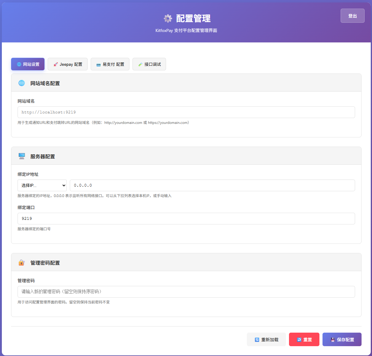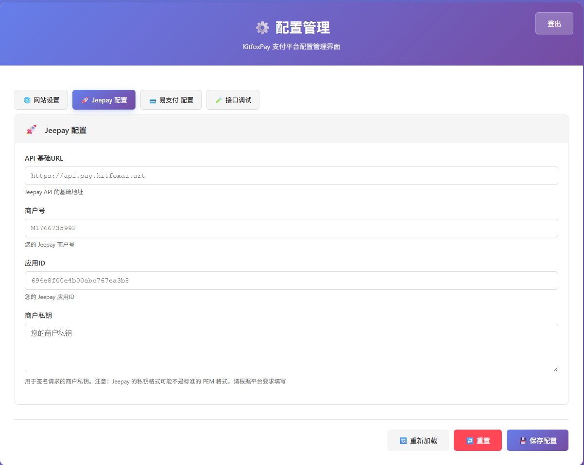 - 其他易支付接口系统:任何使用易支付接口的系统都可以通过 KitfoxPay 接入 Jeepay