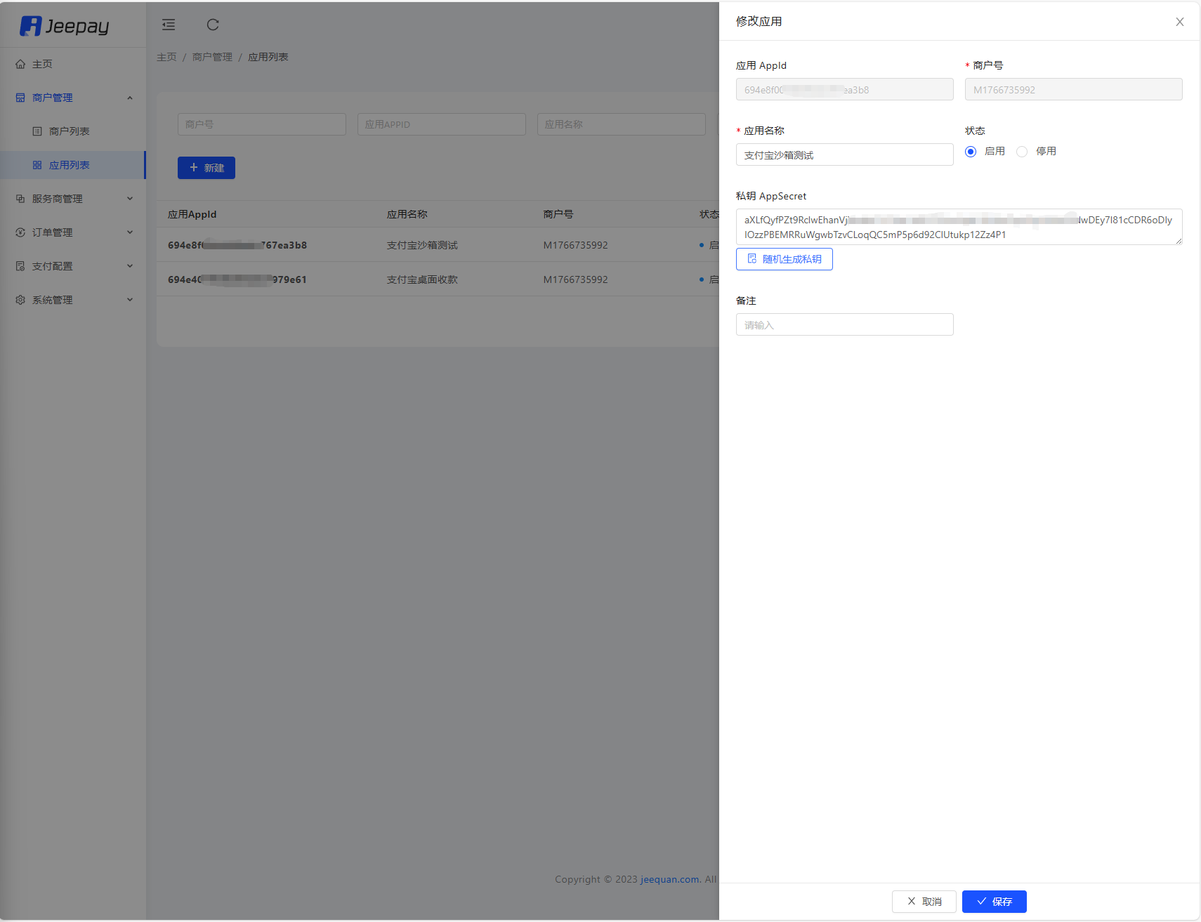 复制 config.example.js 为 config.js,填入你的 Jeepay 配置信息。具体获取方法请参考下方"界面展示"部分。