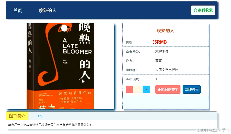 本在线购书商城系统应用Java技术,MYSQL数据库存储数据,基于SSM+Vue框架开发。在网站的整个开发过程中,首先对系统进行了需求分析,设计出系统的主要功能模块,其次对网站进行总体规划和详细设计,最后对在线购书商城系统进行了系统测试,包括测试概述,测试方法,测试方案等,并对测试结果进行了分析和总结,进而得出系统的不足及需要改进的地方,为以后的系统维护和扩展提供了方便。