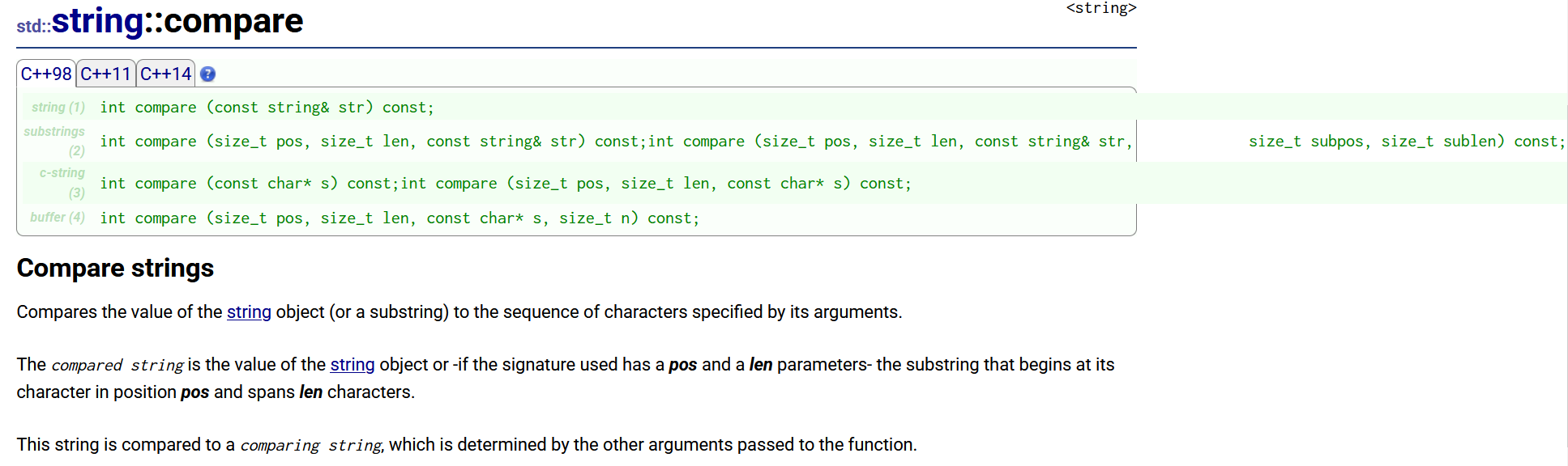 string::compare参考文献,这个接口作用是比较两个字符串