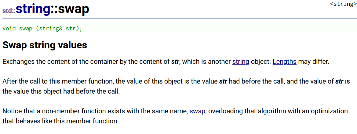 string::swap:交换两个字符串的内容
