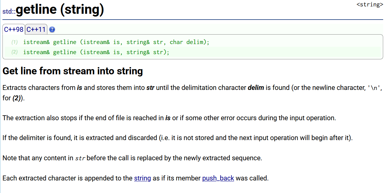 getline (string)参考文档,string字符串在使用cin输入数据时,有一个缺陷:遇到 ' '(空格)后才会终止读取(可以传第三个参数来改变这个终止flag):