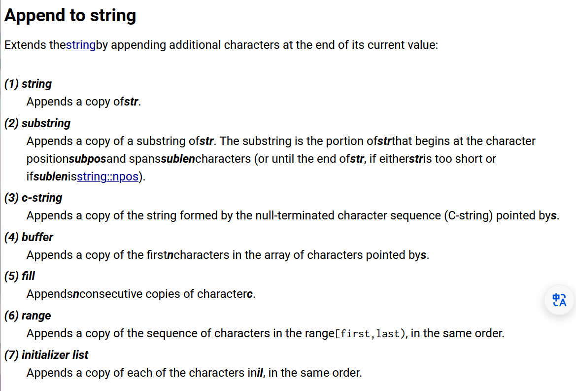 [string::operator +=(最常用)](#string::operator +=(最常用))