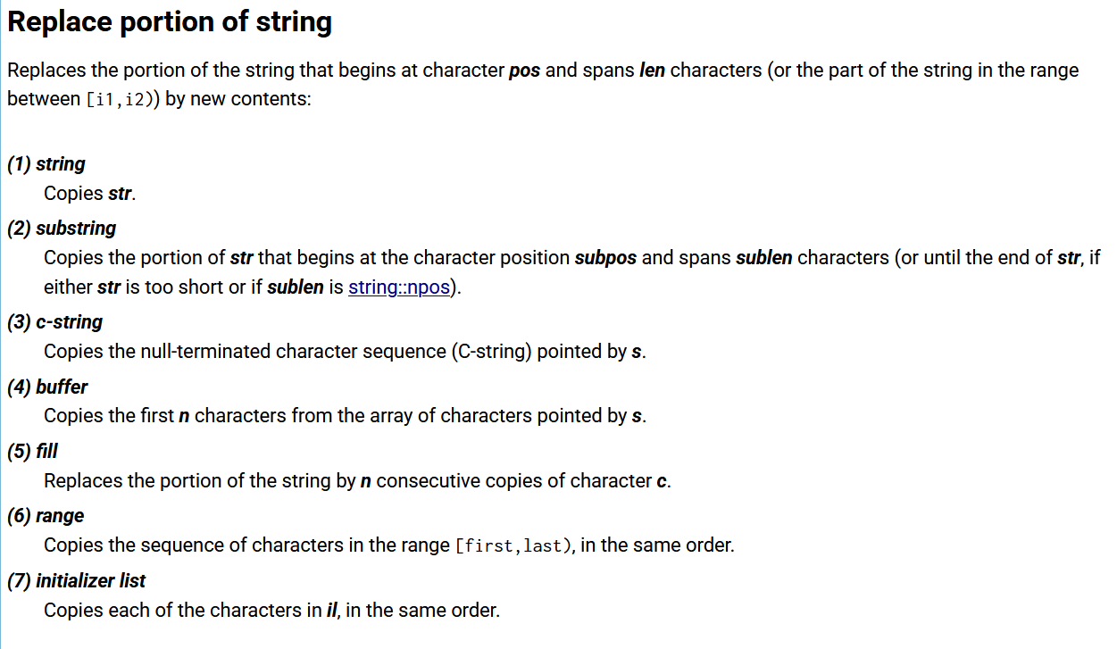 str7.replace(7, 4, "C++"); // 从索引7开始,替换4个字符为"C++"