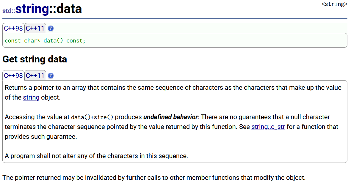 // 2. data:获取字符串数据指针(C++11后与c_str几乎无区别,早期无末尾'\0')