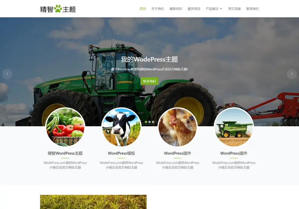 绿色农场wordpress主题模板,用于农业相关行业的科技公司或农场官方网站建站使用。