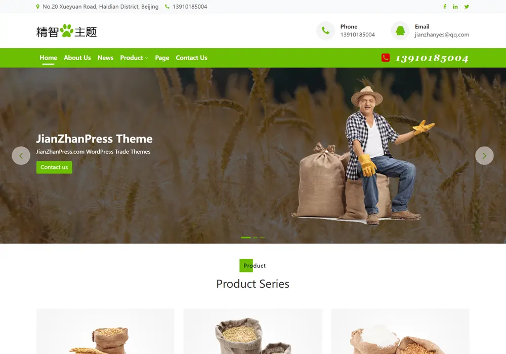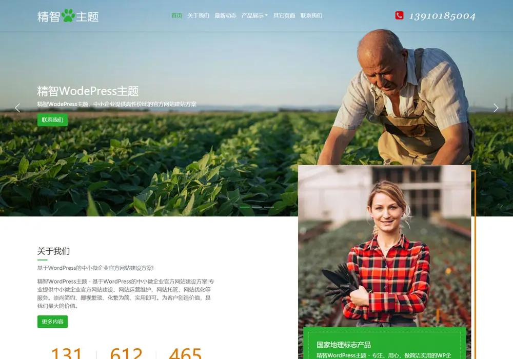 简洁实用的绿色生态农业wordpress主题,适合做生态农业的农业公司或农场使用。