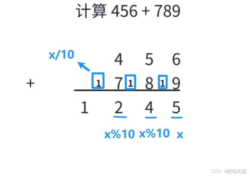 b. 处理进位 -->x / 10
