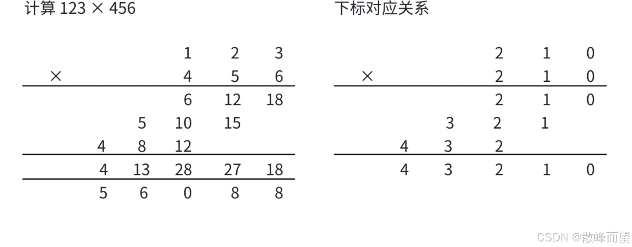 即可理解为下标 + 下标 = 对应下标相乘位置 => c[i + j] += a[i] * b[j]: