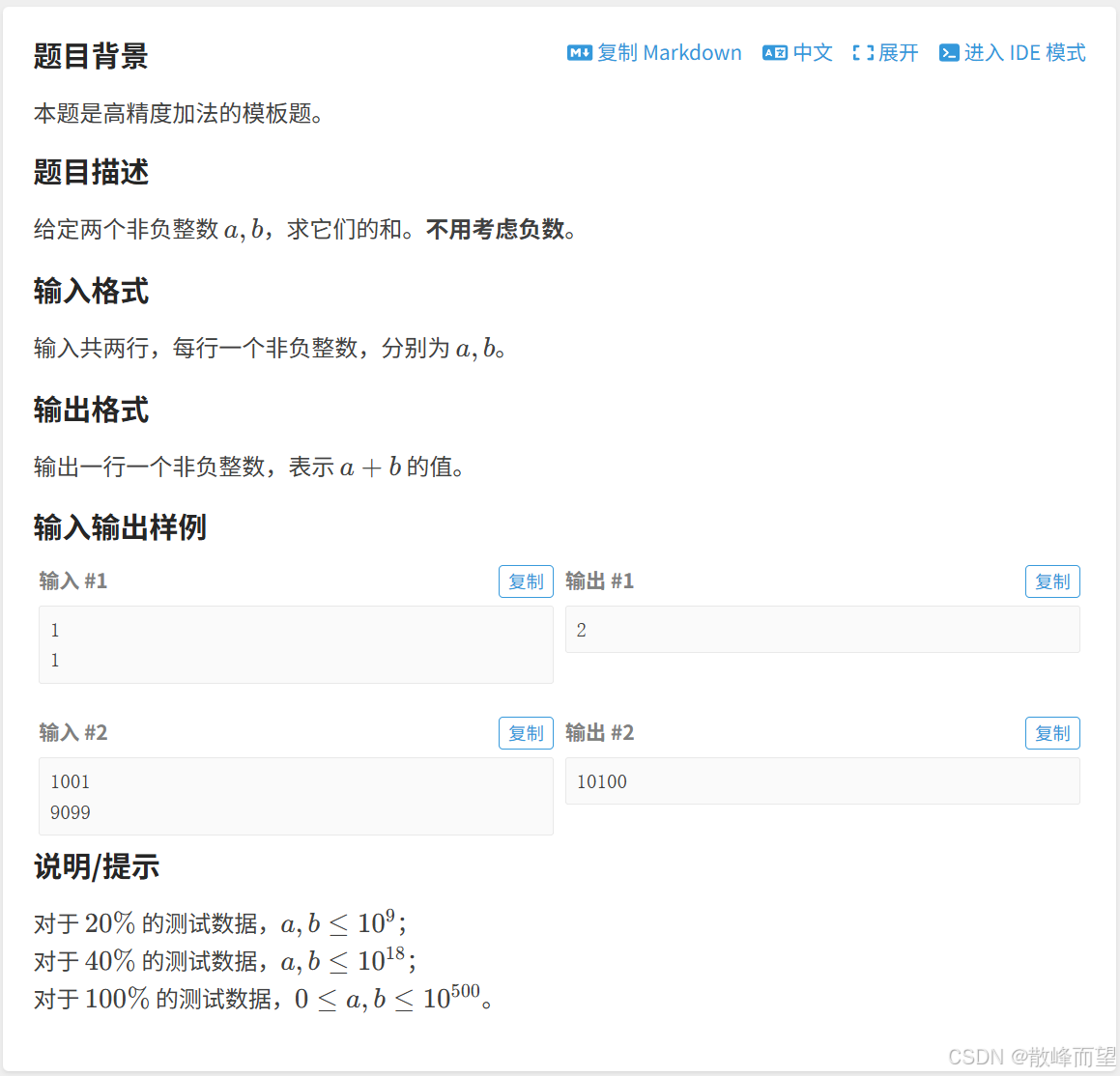 1. 高精度加法