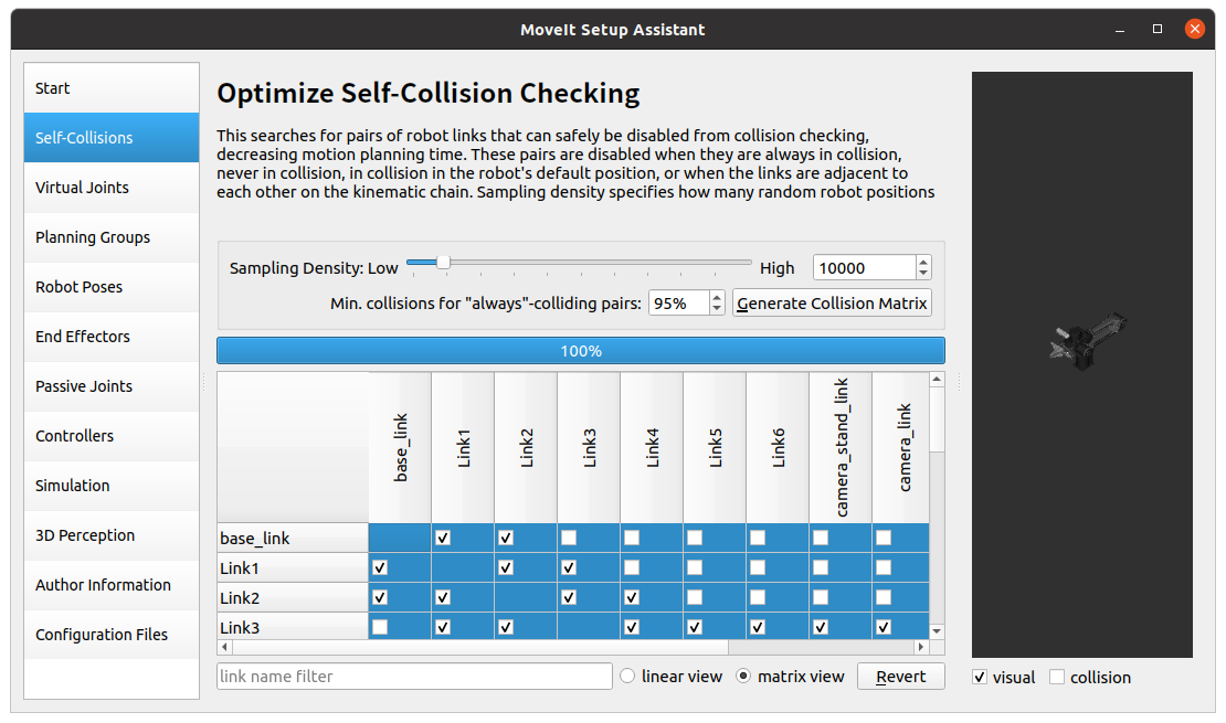 计算碰撞模型;因为自由一条臂,使用默认参数即可