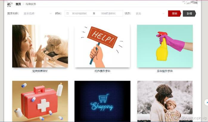 Keywords: community mutual aid; Service publishing and requesting; Spring Boot; Vue; MySQL