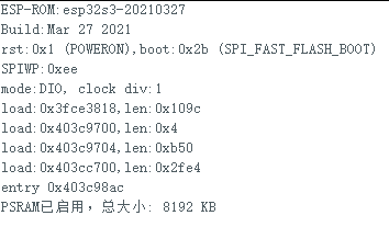 Serial.printf("PSRAM已启用,总大小: %d KB\n", ESP.getPsramSize() / 1024);