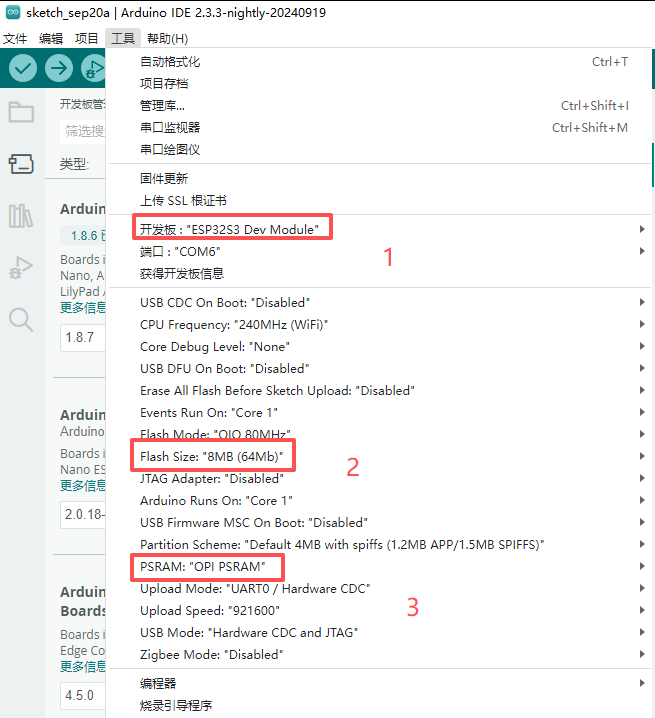 使用arduion ide写个小程序验证一下psram 。