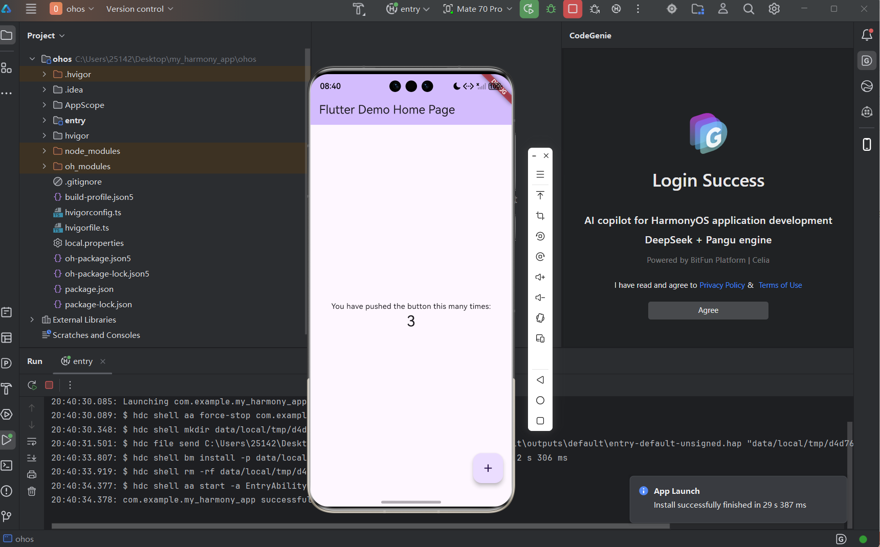 通过以上步骤,就可以在Windows系统上成功搭建Flutter与DevEco Studio的开发环境,并顺利运行鸿蒙应用。