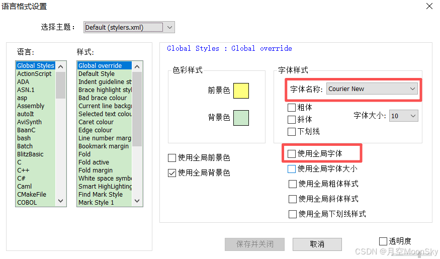 A、打开设置:在Notepad++中,单栏选择 Settings(设置),点击Stye Configurato...(语言格式设置...)菜单。