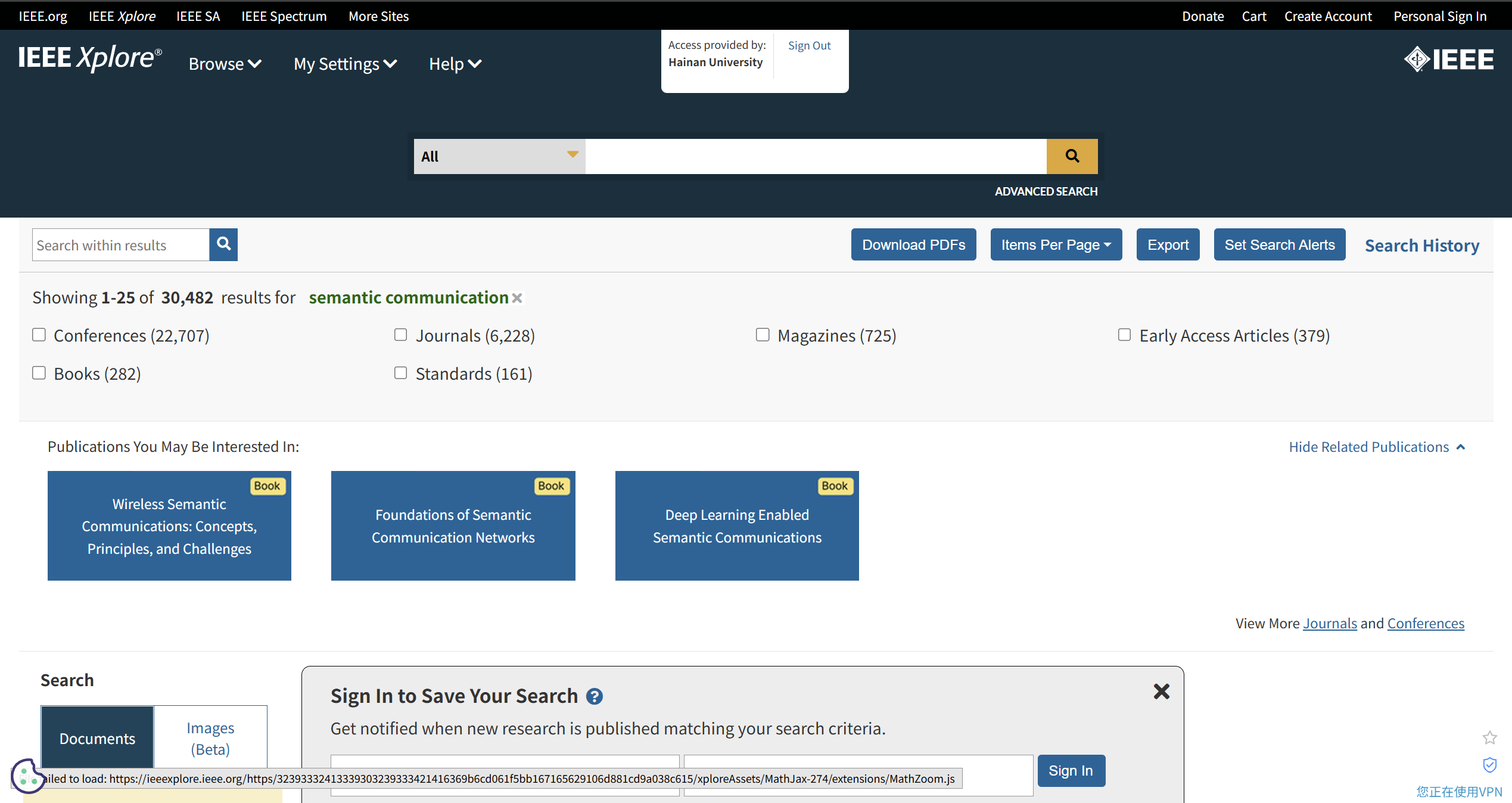 随便搜搜文献,挂着学校VPN的标志在中间上面和右下角