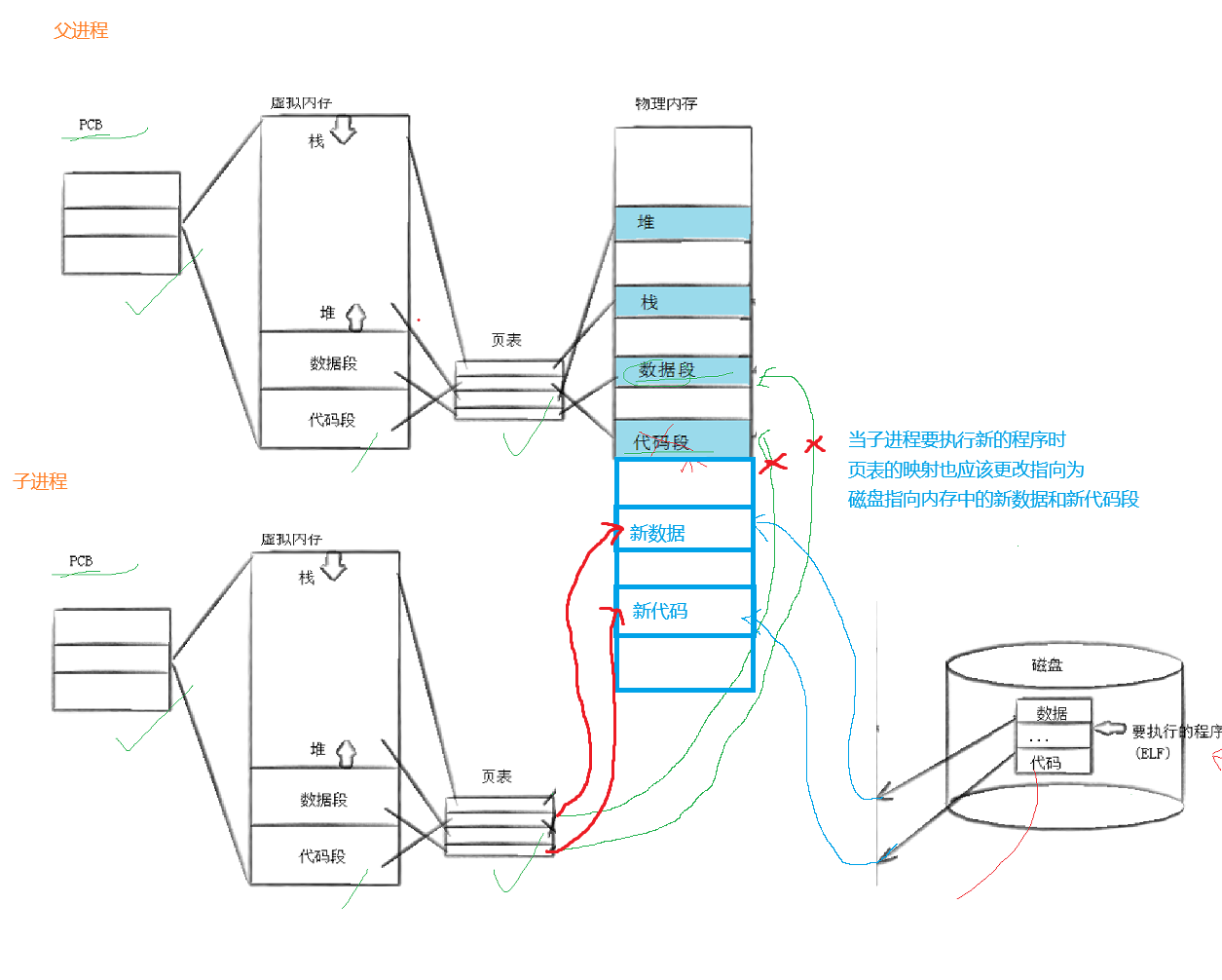 程序替换是通过特定的接⼝,加载磁盘上的⼀个全新的程序(代码和数据),加载到调⽤进程的地址空间