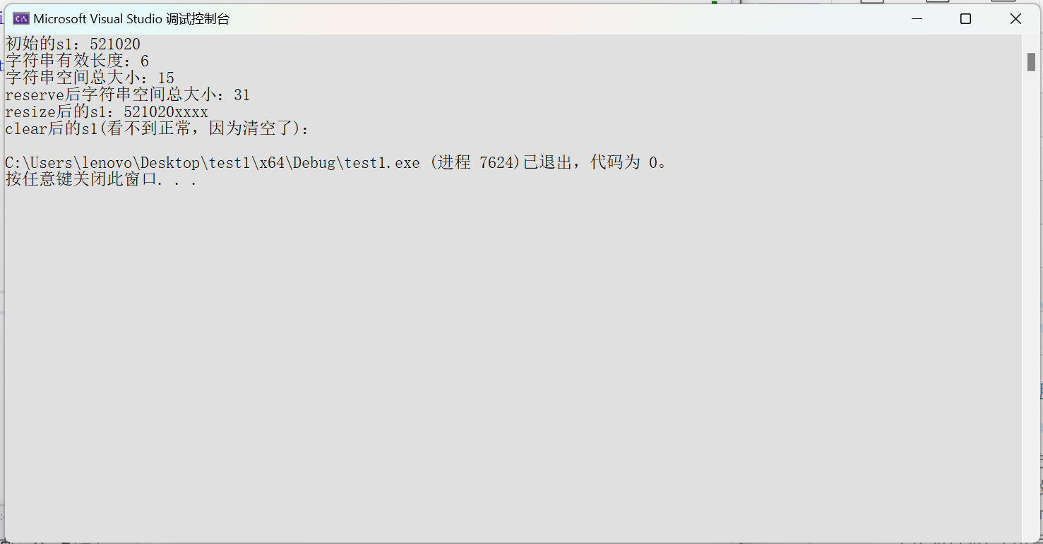cout << "reserve后字符串空间总大小:" << s1.capacity() << endl;//s1空间总大小为31