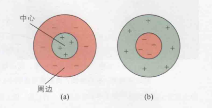 后来的研究者们记录了猫的视神经纤维信号,并发现了感受野的"中心-周边结构"(Barlow,Fitzhigh和Kuffler,1957;Hubel和Wiesel,1965)。使用下图9可以说明这一结构,在图(a)中的感受野中,当光点照射中心区域时,放电活动增强,因此该中心区域被称为感受野的兴奋区。相反,刺激周边区域会导致放电率下降,故此区域被称为感受野的抑制区;而在图(b)的感受野中,情况则截然不同,中心区域受到刺激时表现为抑制,周边区域受到刺激时则表现为兴奋。