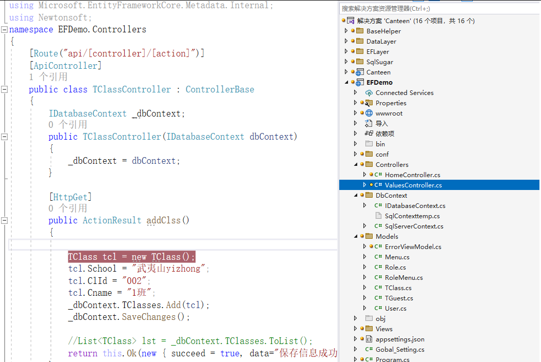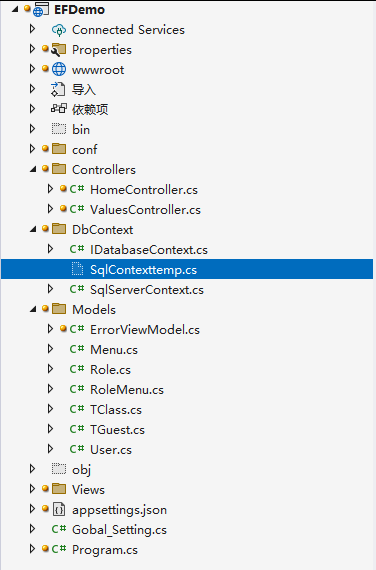 在实际开发过程中,很多项目都会进行分层操作,例如新建一个Demo.Models类库用来存放实体类和数据库上下文